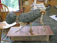 I’ve been working with a local sculptor this summer. Right now he is starting to sculpt a Labrador so I decided I’d try sculpting a Pug. Here are some pictures of the arms and leg armature and the head of the Pug being sculpted.