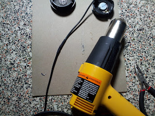 I slipped on a piece of heat shrink tubing and twisted the wires together. I plugged in the speakers and tested them to make sure they worked.