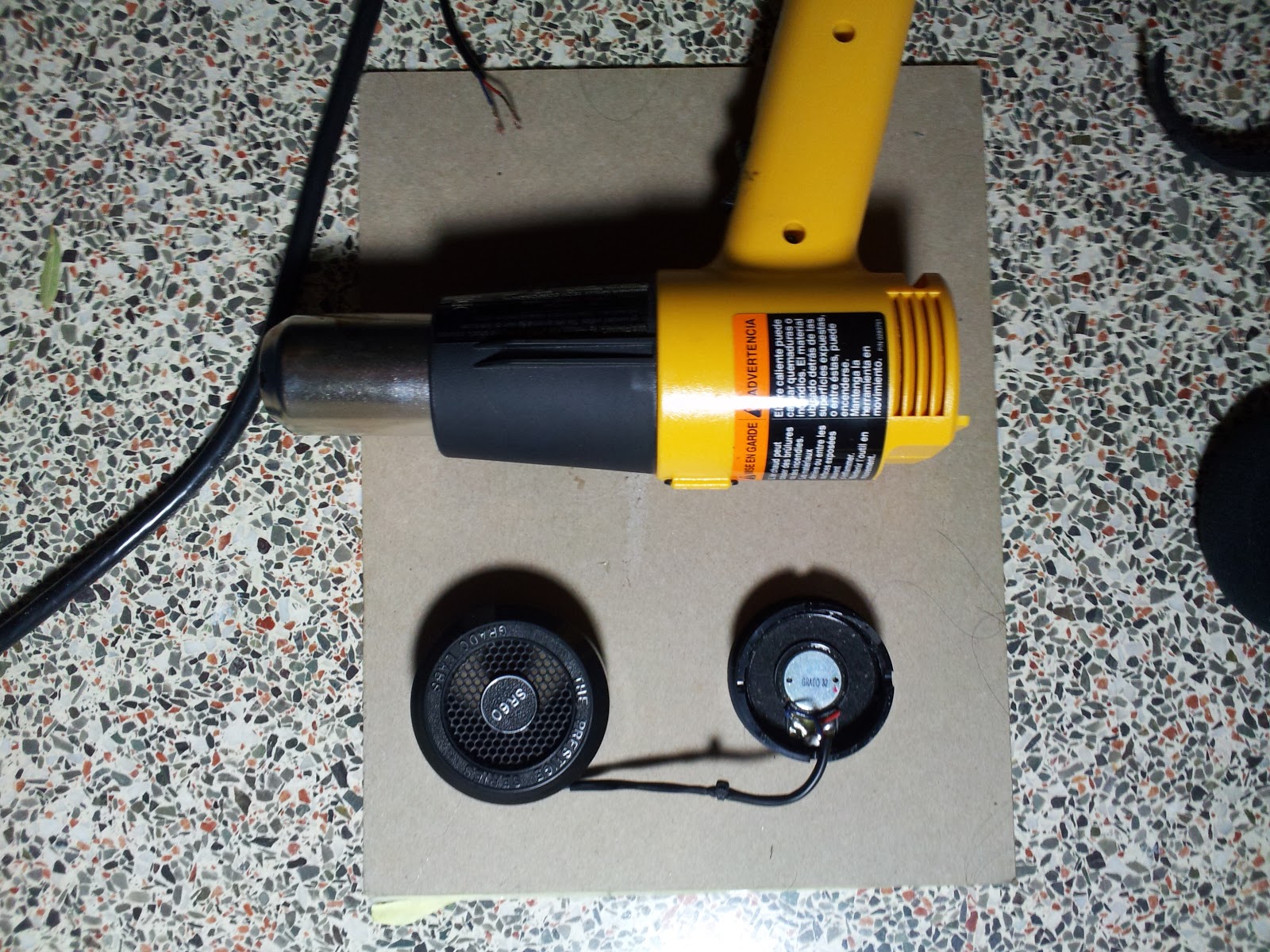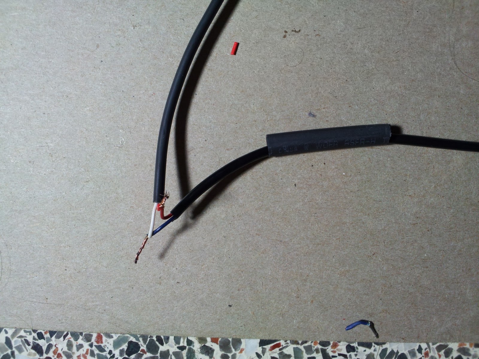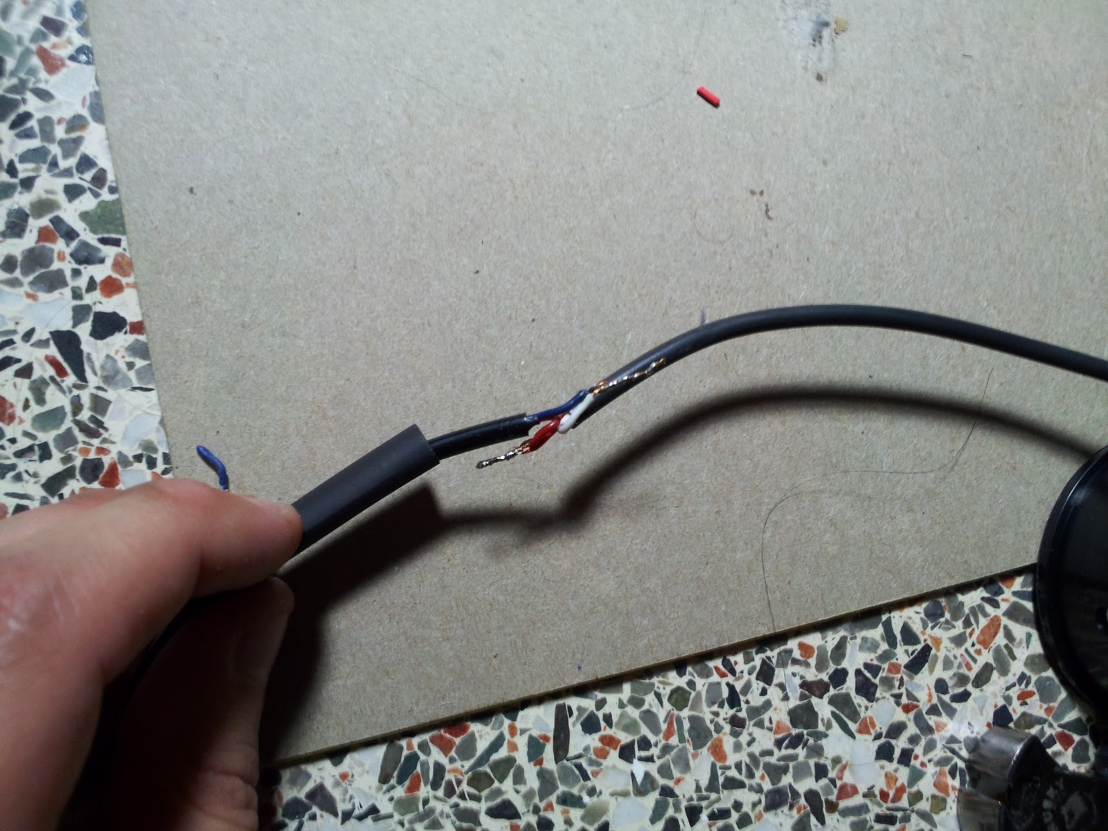 I slipped on a piece of heat shrink tubing and twisted the wires together. I plugged in the speakers and tested them to make sure they worked.